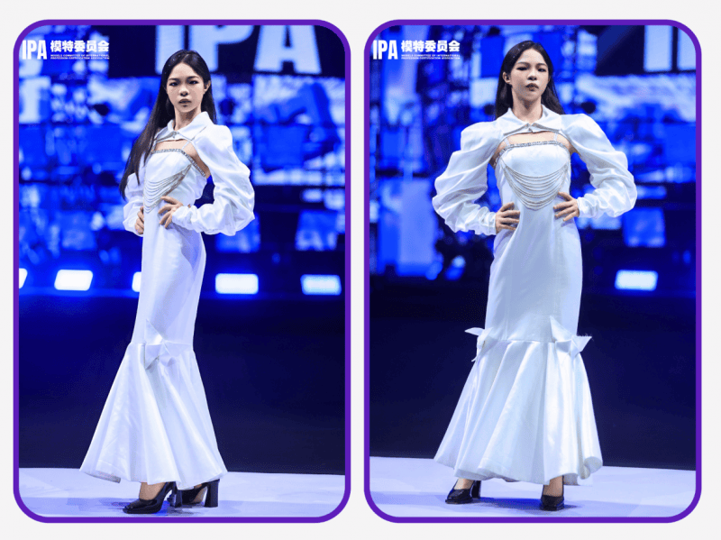 参与这场活动的荣耀官张梦馨凭借出色发挥,和瞩目的亮相环节,自成焦点,成为秀场上一道独一无二的风景线。在开幕式展示秀上,张梦馨身着白色修身长裙,大袖与链饰别致,脚蹬黑高跟。她神情冷艳,身姿婀娜,台步优雅,气场十足。