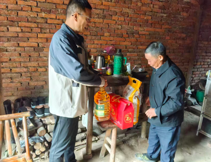 活动中,工作人员先后前往五都镇六都居、兰田村,分别走访慰问了孤寡老人余礼奀与叶修发。每到一户,工作人员都与老人促膝长谈,细致询问老人的身体状况、生活需求与日常照料情况,耐心倾听老人的心声,用拉家常的方式传递关怀;同时为老人送上精心准备的节日礼物,叮嘱老人注意秋冬季节保暖,保重身体,有困难及时反映。