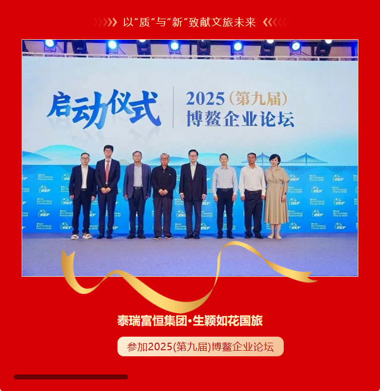 2025,新程已启,向新而行。第九届博鳌企业论坛即将于海南盛大启幕,本届会议以 “向新而行 质领未来” 为主题,汇聚政、商、学界领袖,共探发展新路径。泰瑞富恒集团旗下高端文旅品牌——生颖如花国旅,凭借其卓越的服务品质与持续的创新实践,荣获大会邀请并将出席这一思想盛会,与各界精英同台论道,共话未来。