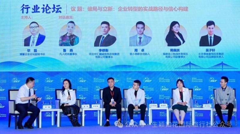 转型已是企业发展的必答题,不仅要直面“破局”之困,更要探寻“立新”之道。行业论坛上,博鳌企业论坛副秘书长毕磊与凡人时尚、河北中汇融诚信息咨询集团有限公司、宫小燕、福建连江桃园体育娱乐有限公司、北京泰瑞富恒投资集团有限公司的企业家代表围绕“破局与立新:企业转型的实战路径与信心构建”这一议题展开了精彩探讨,嘉宾们结合各自的行业洞察与管理实践,分享真知灼见与鲜活案例,通过探讨与碰撞,勾勒出更清晰的转型地图,注入更坚实的信念力量。
