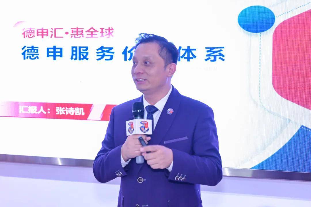 紧接着,104A用户发展团队总监张诗凯带来《德申服务价值体系》专题分享,从线上线下融合的服务模式出发,详解四大服务中心、五零服务等,让参会者清晰认知到德申在资源链接、学习成长等方面的多元价值,彰显了德申的魅力。
